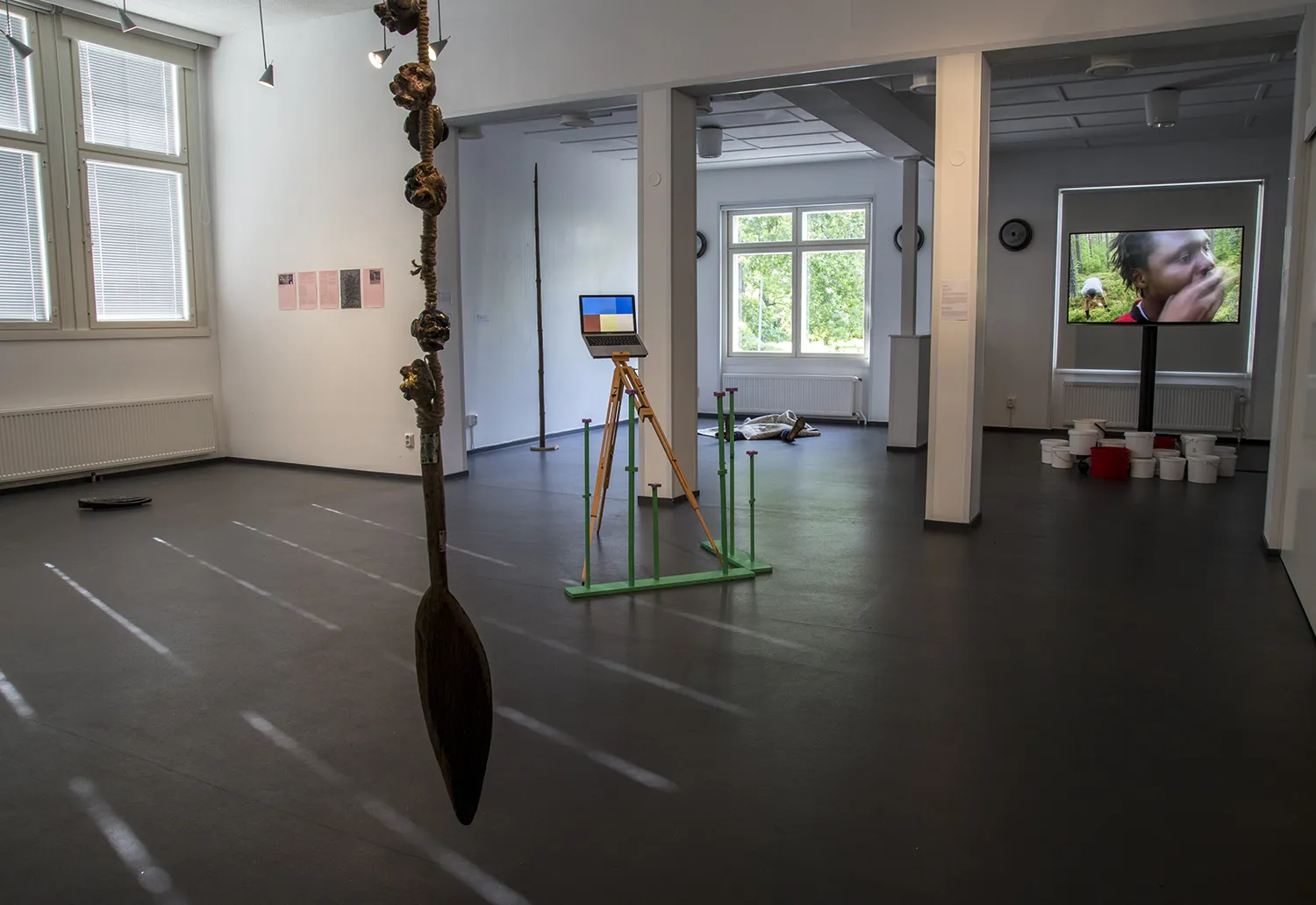The CTG Collective, whose members and collaborators in this instance hail from New York, Japan, Israel, Surinam, Zimbabwe, and Finland, present their introductory exhibition at the Serlachius Museums in Aleksanterin Linna Gallery. The performance, video, ceramics, and sculptural works highlight the group's reflections on their time in Mänttä over the past two weeks. Notions of folklore, ecology, and immigration take center stage as the artists bring their personal histories into conversation with the Finnish cultural and political landscape.