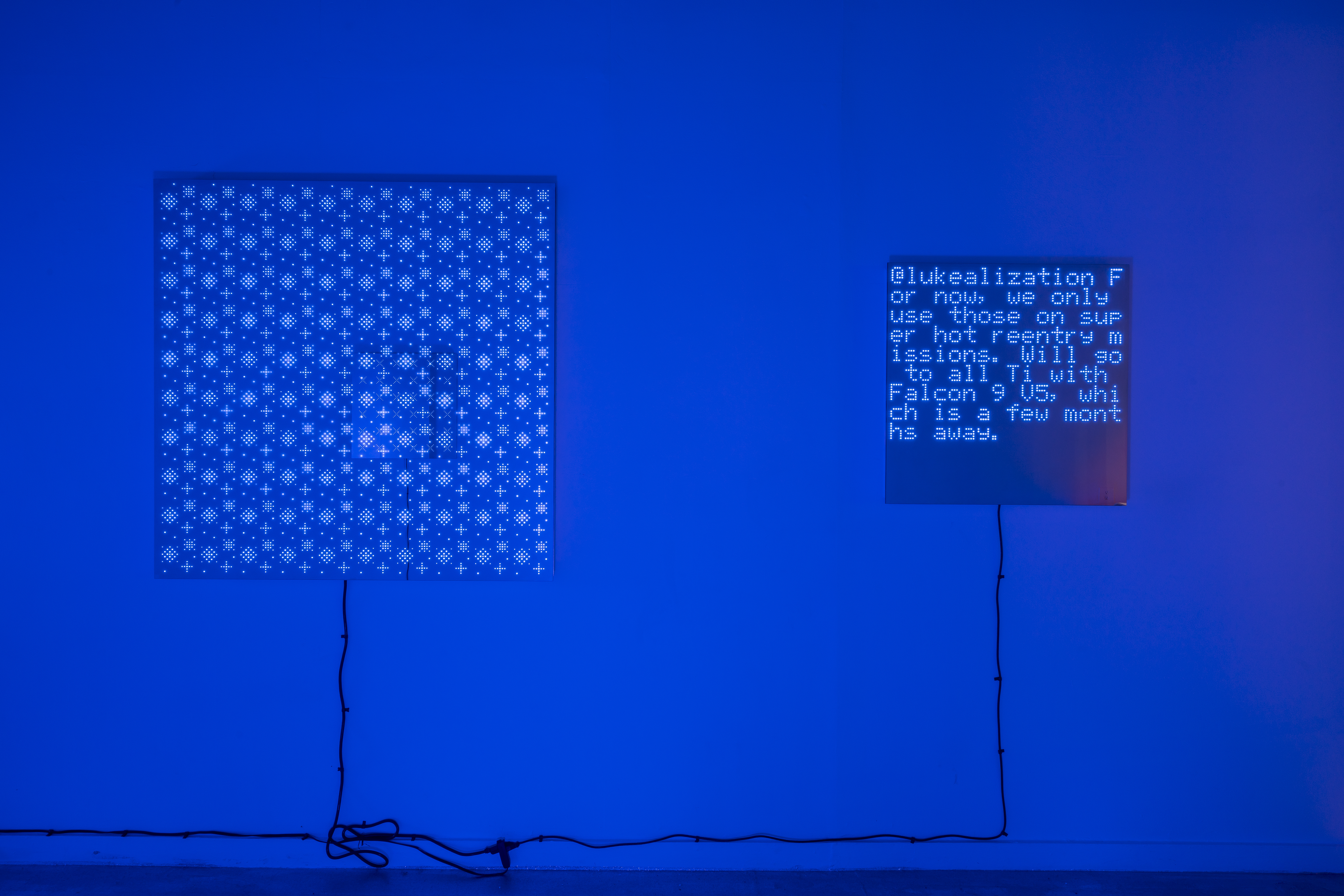 One LED flat work simultaneously addresses our contemporary obsession with social media and the future of technology. Updating on its own, it displays Elon Musk's Twitter feed in real-time. The work was born out of a jealousy towards wordsmiths like Christopher Wool and Jenny Holzer, whose native English tongues result in masterful humor; and Murakami longed to use wit in his own work. Here, Murakami has found his own way to use words by borrowing from a man whose understanding of the future of mankind is best defined by his desire to reach Mars.