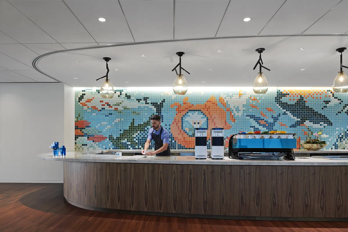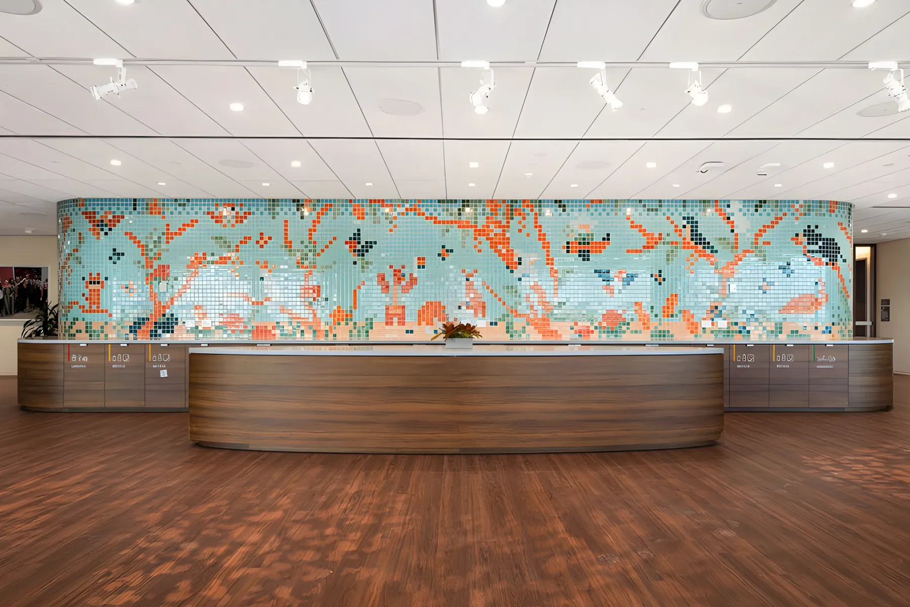 Since 2016, Shinji Murakami has created site-specific tile designs for Salesforce offices around the world, each reflecting the culture, landmarks, and spirit of its city. The designs are realized as handmade ceramic tile murals by Fireclay Tile in California.